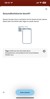 Tipp: Entfernen Sie die Hülle von Ihrem Smartphone. Am besten legen Sie Ihre Karte auf einen Tisch und legen dann Ihr Smartphone zum Scannen auf die Karte.